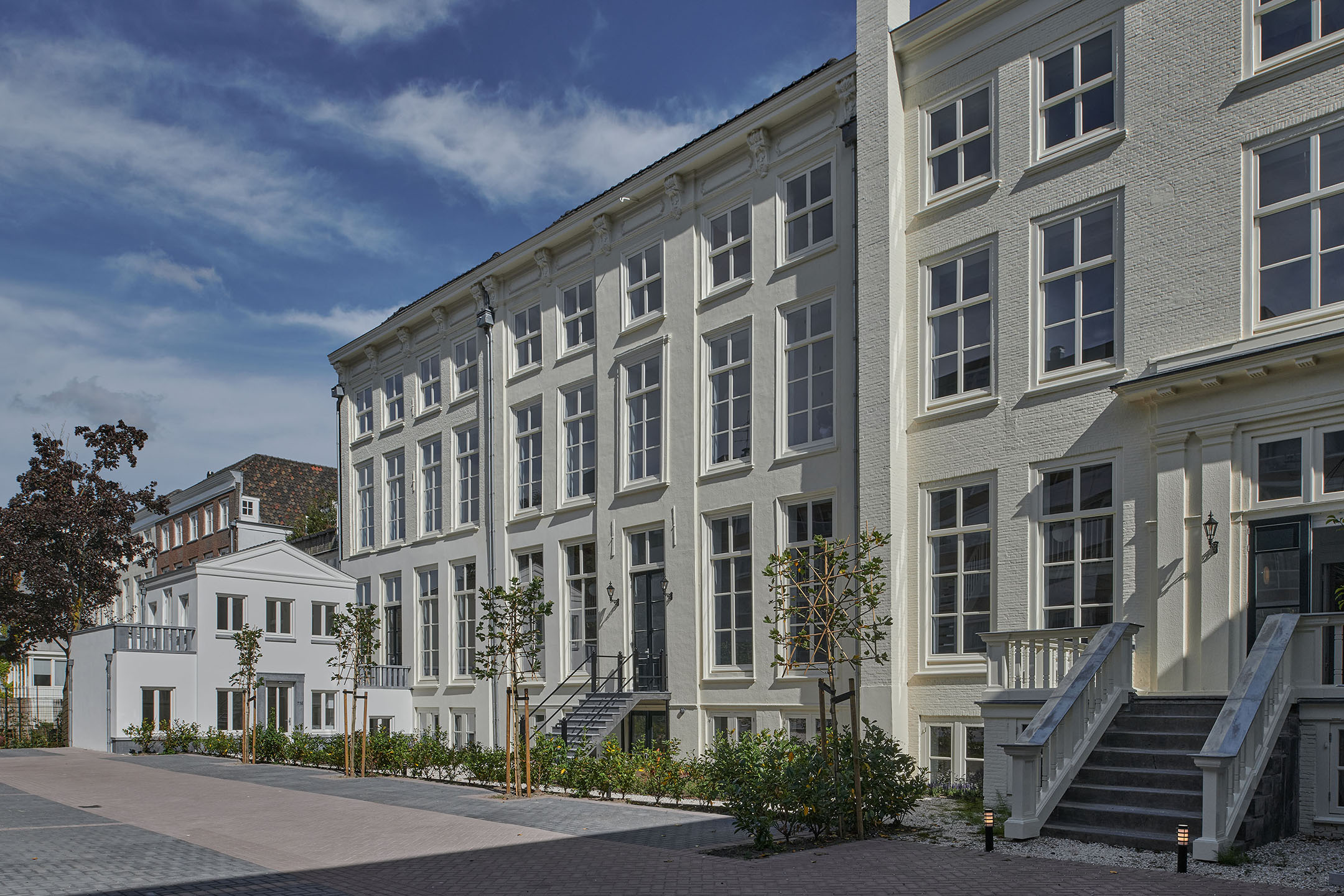 De gekozen aanpak was ‘op te ruimen’ en de structuur van de drie panden binnen en buiten weer afleesbaar te maken. De drie entree’s zijn in ere hersteld en hebben weer doorgangen naar de tuin gekregen. De voorgevel werd gerestaureerd op een manier dat de kleine verschillen in de drie panden weer afleesbaar zijn gemaakt door ramen en ornamenten te herstellen en subtiele kleurverschillen aan te brengen tussen de panden onderling. De helft van het parkeerterrein aan de achterzijde kon worden vrijgemaakt voor een gezamenlijke tuin. En de aanbouw is vervangen door een kleiner ‘tuinhuis’ dat herinnert aan de verdwenen koets- en tuinhuizen die in de achttiende eeuw een visuele beëindiging vormden voor de diepe tuinen.