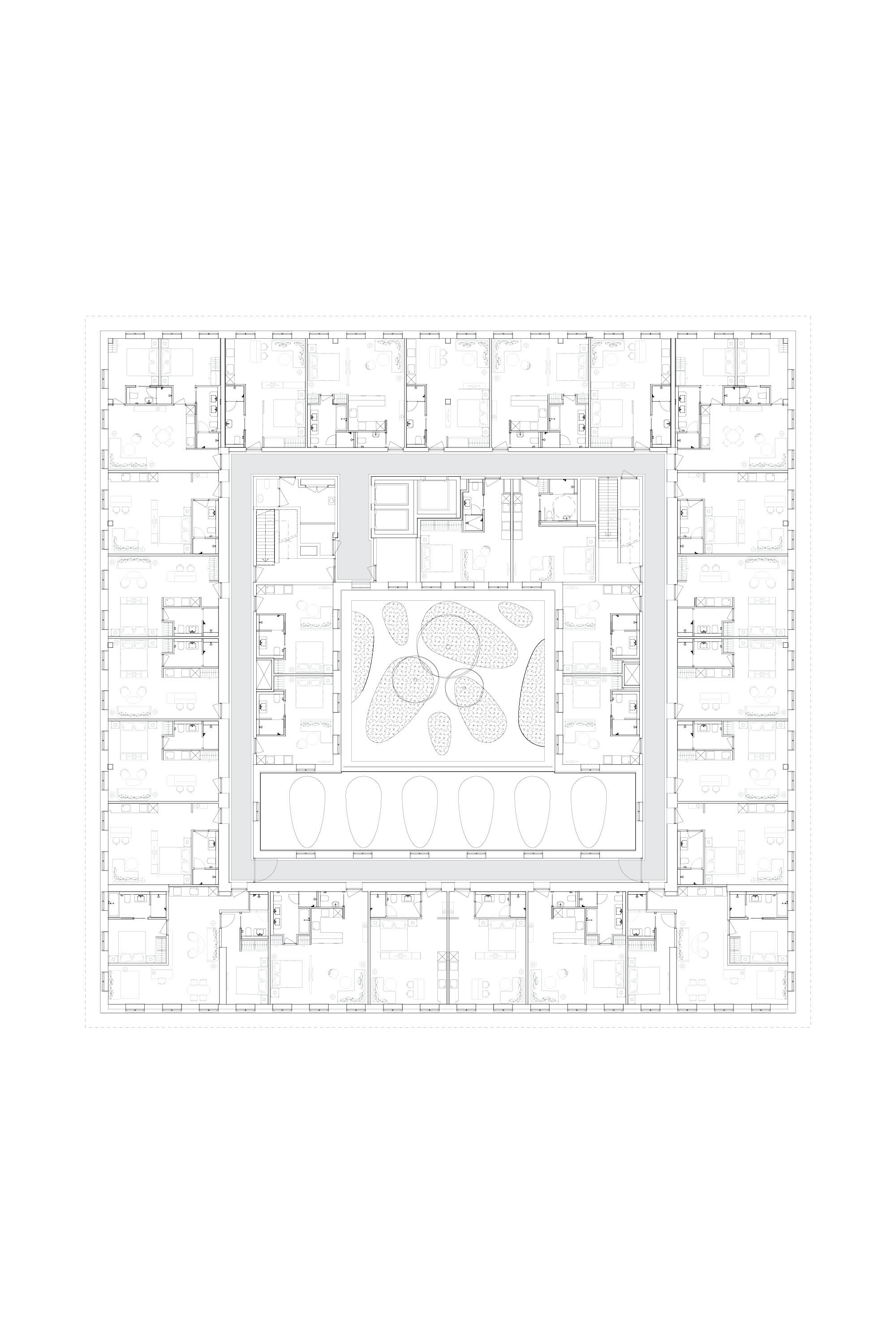 Het Zuidblok is een alzijdig publiek gebouw dat zijn omgeving activeert en verrijkt. Het Stadionplein was lange tijd een parkeerplaats ingeklemd tussen Stadion en woonblokken van Plan zuid. Met het Zuidblok ontstaat een aantrekkelijk stedelijk plein, waar niet de auto maar de flaneur centraal staat. Als onderdeel van het door OMA/Rem Koolhaas gemaakte masterplan, werd een bouwenvelop met een uitkragend bouwdeel voorgeschreven. De uitkraging garandeert een vrij uitzicht voor omwonenden op maaiveld. Onze uitwerking stelde zich als doel deze uitkraging tektonisch geloofwaardig te articuleren. Het plein onder de spectaculaire luifel biedt beschutting en nodigt uit tot activiteiten in iedere weersomstandigheid.